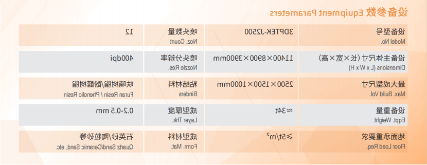 샌디 테크놀로지는 독자적으로 개발하여 출시한3DPTEK - J2500 샌드 프린터잉크젯 샌드 3D 프린팅 기술을 채택하여 기존 기술의 한계를 극복하고 금형 개발이 필요없는 디지털 금형없는 성형, 성형 크기가 2500×1500×1000mm로 항공 우주, 전력 및 에너지, 선박, 펌프 및 밸브, 건설 기계 분야의 크고 복잡한 주물의 생산 요구에 쉽게 대처할 수 있습니다.