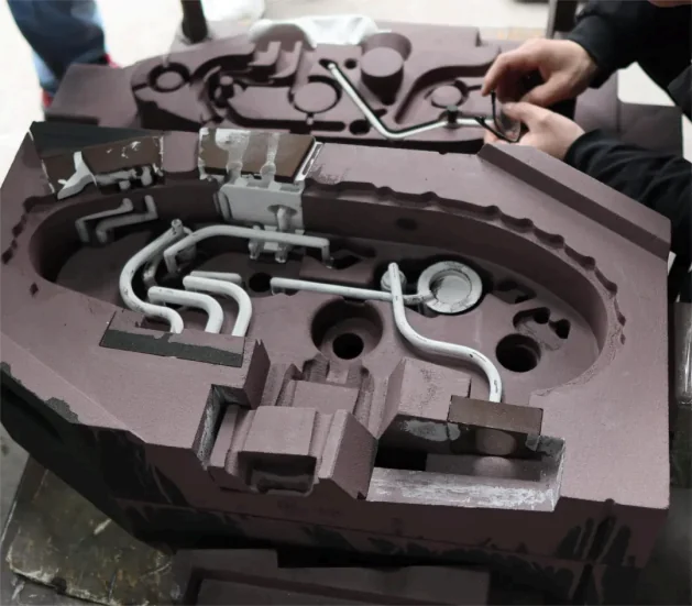 该工艺创造性地结合了两种3D打印技术的优势:采用3DP工艺制作高精度外模,配合SLS工艺成型复杂内腔或细小管路砂芯。这一技术组合不仅实现了传统工艺难以企及的结构复杂性,更将砂芯强度提升至4-6MPa,远超传统工艺的1.5-2.5MPa水平。在实际应用中,该工艺已成功用于船舶泵阀复杂结构件、航空航天动力部件等的高精度制造。