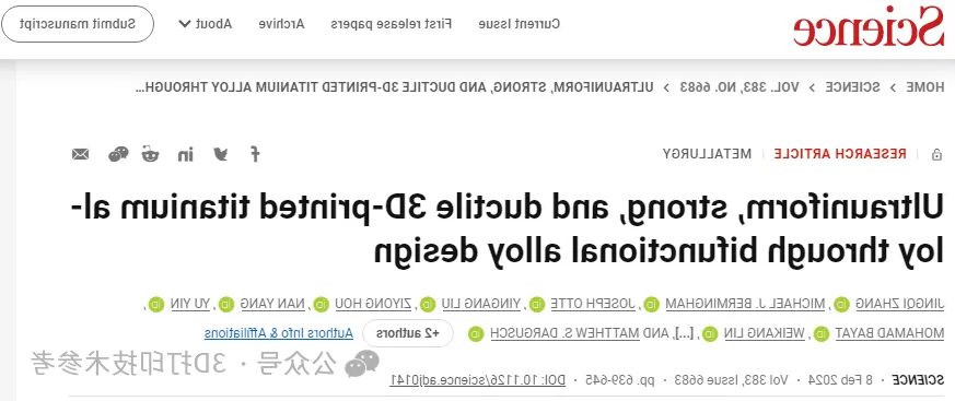 2024年3D打印技术领域第二篇Science文章于2月8日发表。