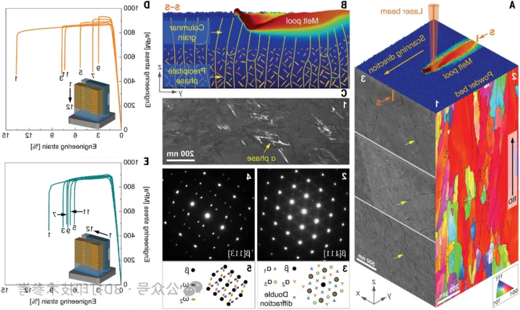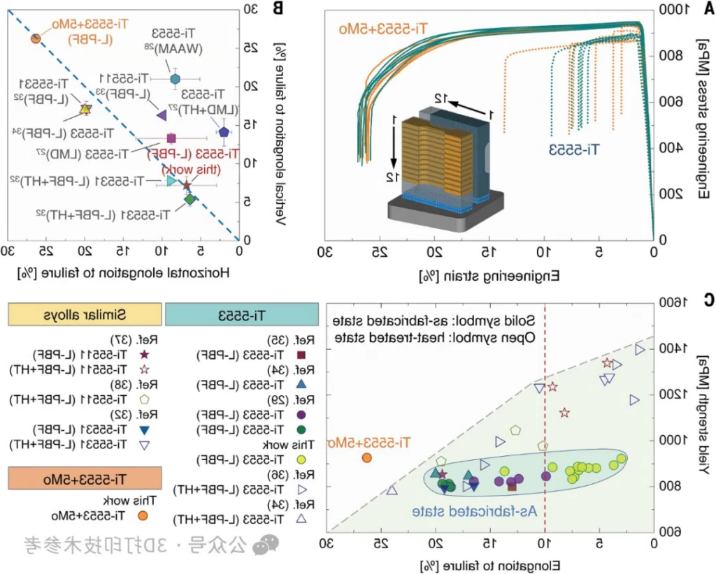 研究背景在金属3D打印过程中,经常会出现粗大的柱状晶粒和不均匀分布的相,导致机械性能不均匀甚至较差。研究涉及一种设计策略,可直接通过3D打印获得高强且性能一致的钛合金的方法。研究表明,在粉末金属混合物中添加钼(Mo)增强了相稳定性,并提高了3D打印合金的强度、延展性和拉伸性能的均匀性。Science同期评论文章指出,该方法有望应用于其他粉末混合物,并能够定制具有增强性能的不同合金。